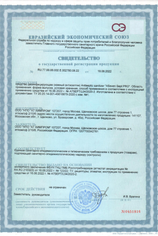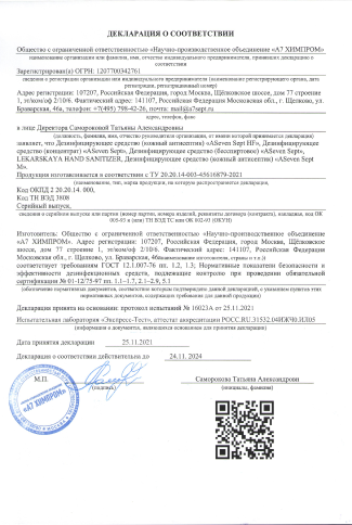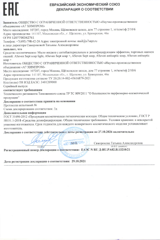 А ещё производим отдельную линейку профессиональных дезинфицирующих средств, например кожные антисептики и жидкое мыло —